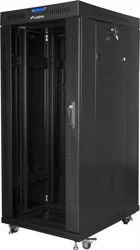 Szafa stojąca jednosekcyjna Lanberg FF01-6827-12BL to rozwiązanie przeznaczone do budowy sieci, montażu okablowania oraz sprzętu w rozmiarze 19 o maksymalnym łącznym udźwigu do 800 kg.