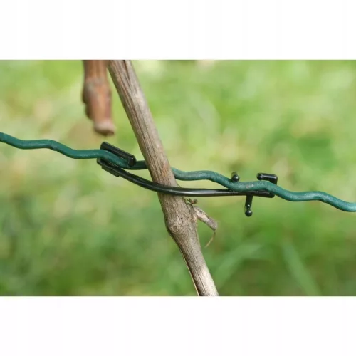 Zapinka do mocowania pędów malin do miękkiego lub falistego drutu.