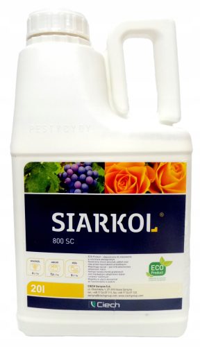 SIARKOL 800 SC jest środkiem grzybobójczym w formie koncentratu w postaci stężonej zawiesiny do rozcieńczania wodą, o działaniu powierzchniowym do stosowania zapobiegawczego w ochronie jabłoni, winorośli oraz róży przed mączniakami prawdziwymi. Środek przeznaczony do stosowania przy użyciu opryskiwaczy ręcznych.