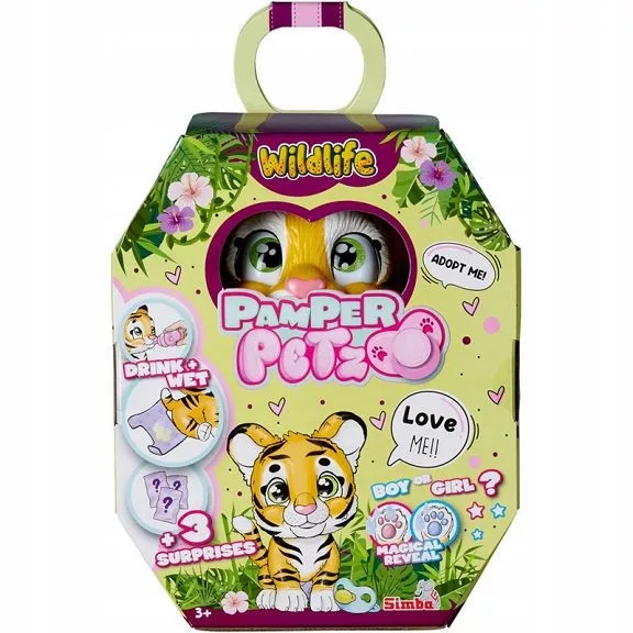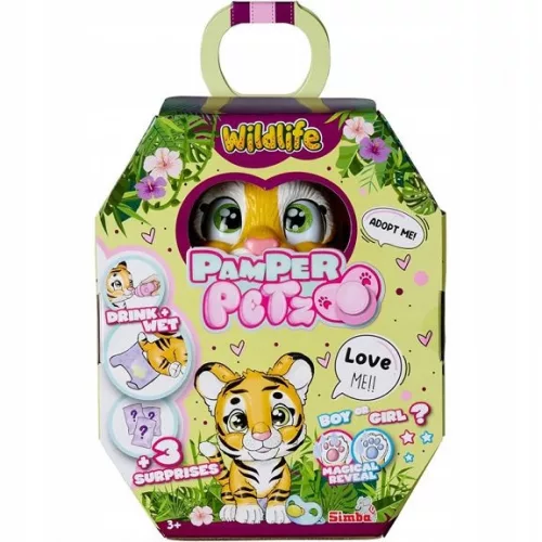 W zestawie: 15 centymetrowy pupilek w pieluszce z funkcją siusiania + 3 niespodzianki + Certyfikat adopcyjny