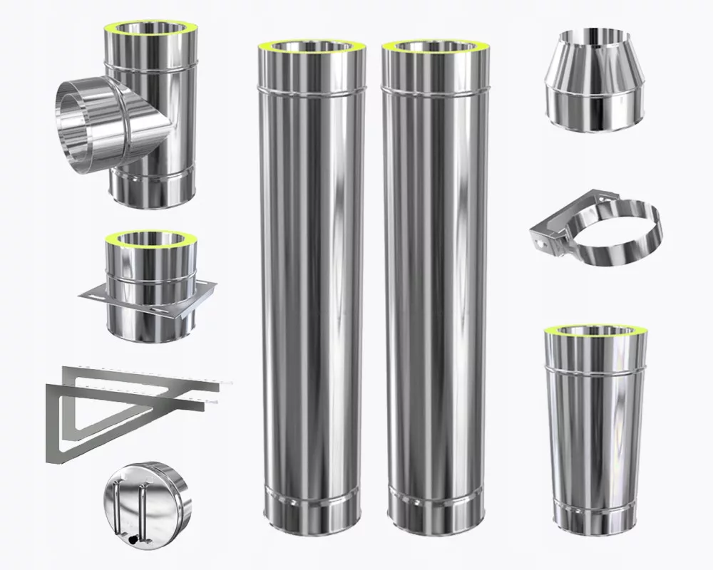 PAKIET KOMIN DWUŚCIENNY IZOLOWANY ZEWNĘTRZNY STALOWY KWASOODPORNY I ŻAROODPORNY fi 120 / 3 mb
