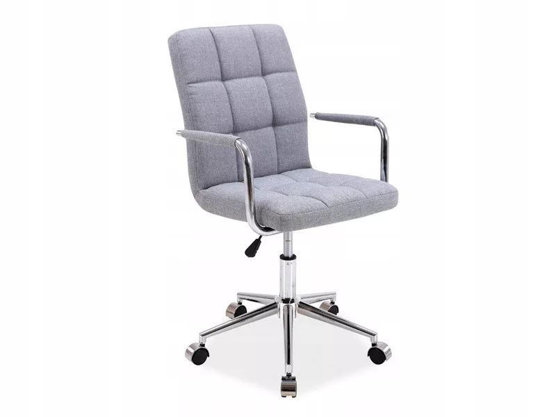 W połączeniu z chromowanymi elementami daje to świetny elegancki wygląd. Stabilne podłokietniki dodatkowo zostały obite materiałem by zwiększyć ich miękkość oraz komfort użytkowania. Q-022 wyposażony został w mechanizm podstawowy dzięki któremu płynnie zmienimy wysokość siedziska.