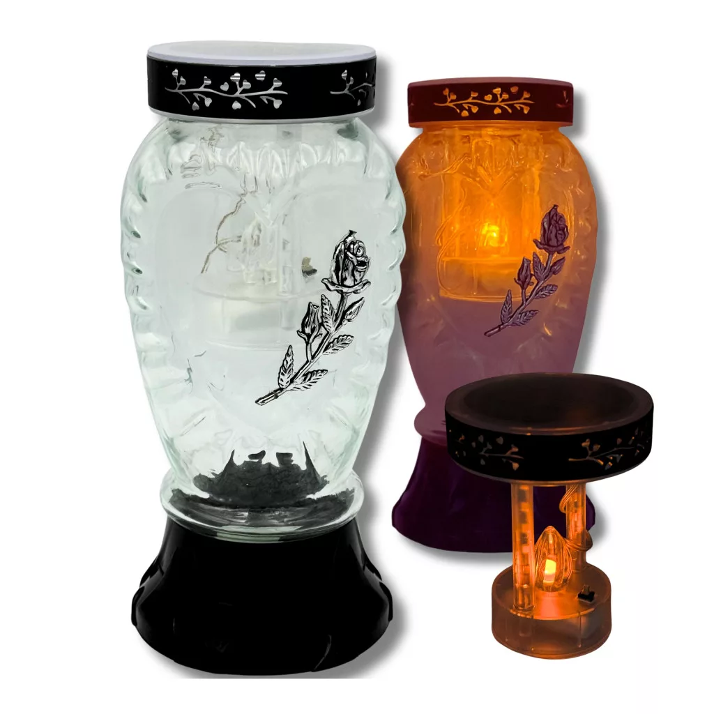 Wysokość znicza to 23,5 cm – jest to optymalny rozmiar zarówno na pojedynczy nagrobek, jak i do większych kompozycji.