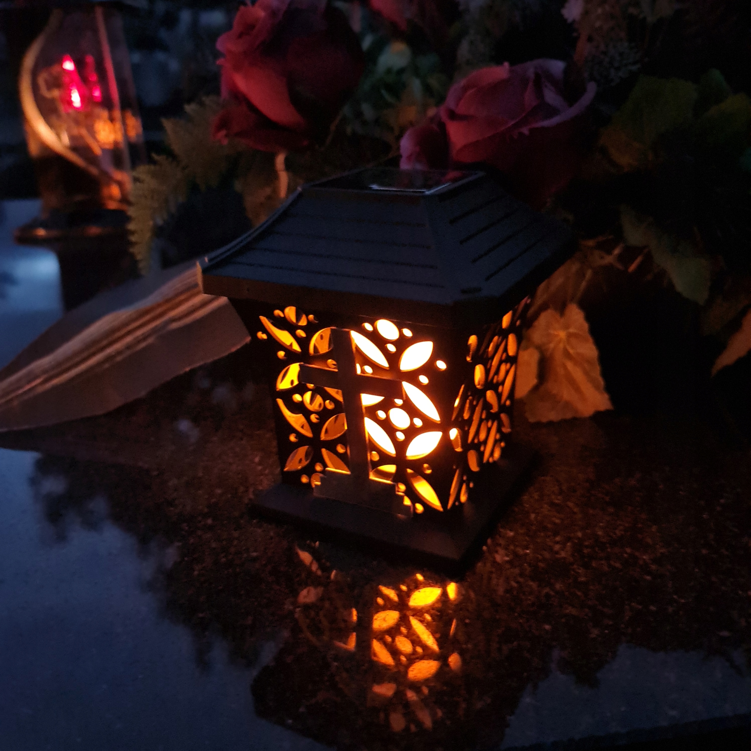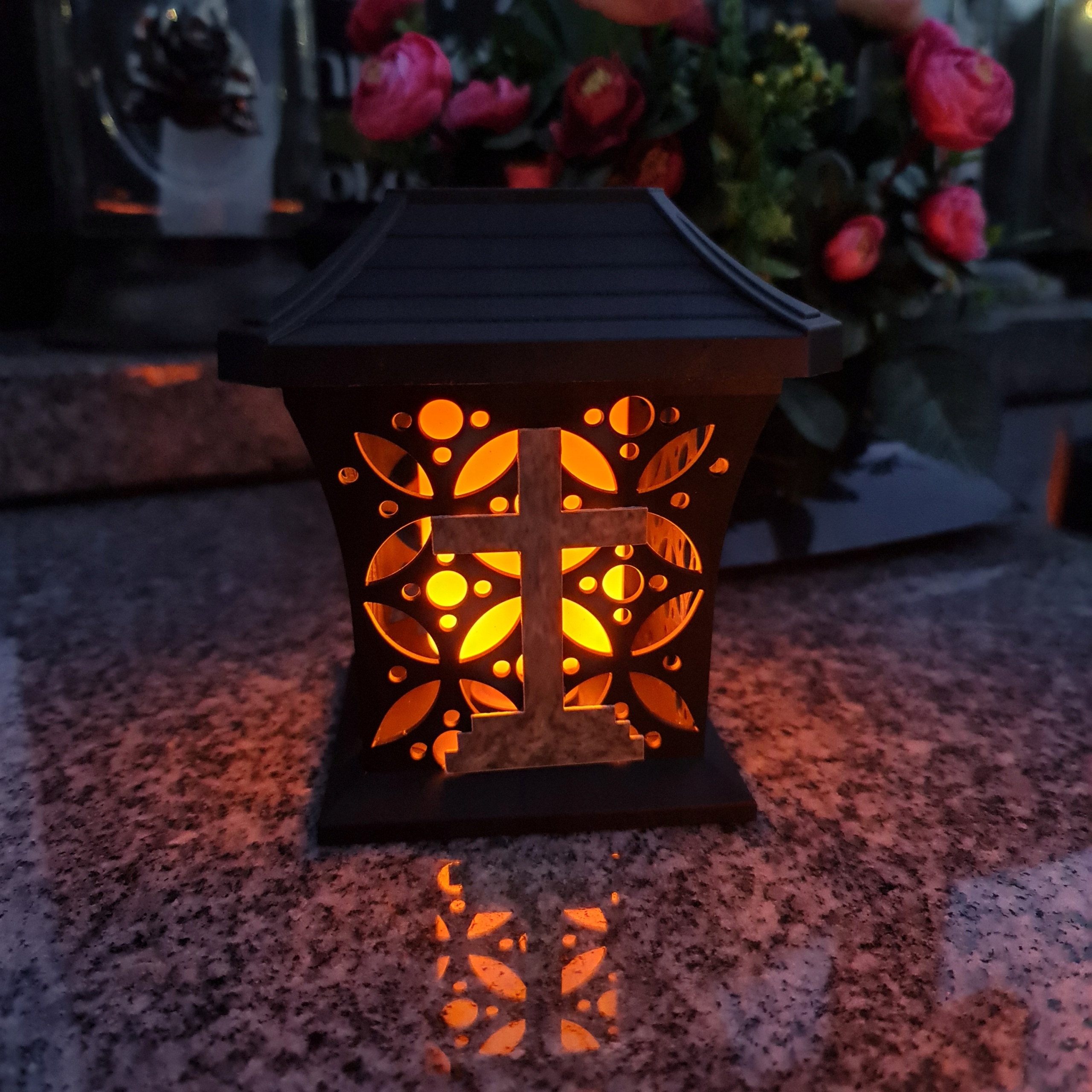 ZNICZ SOLARNY LED LAMPION NA GRÓB STATUETKA NA CMENTARZ Z KRZYŻEM