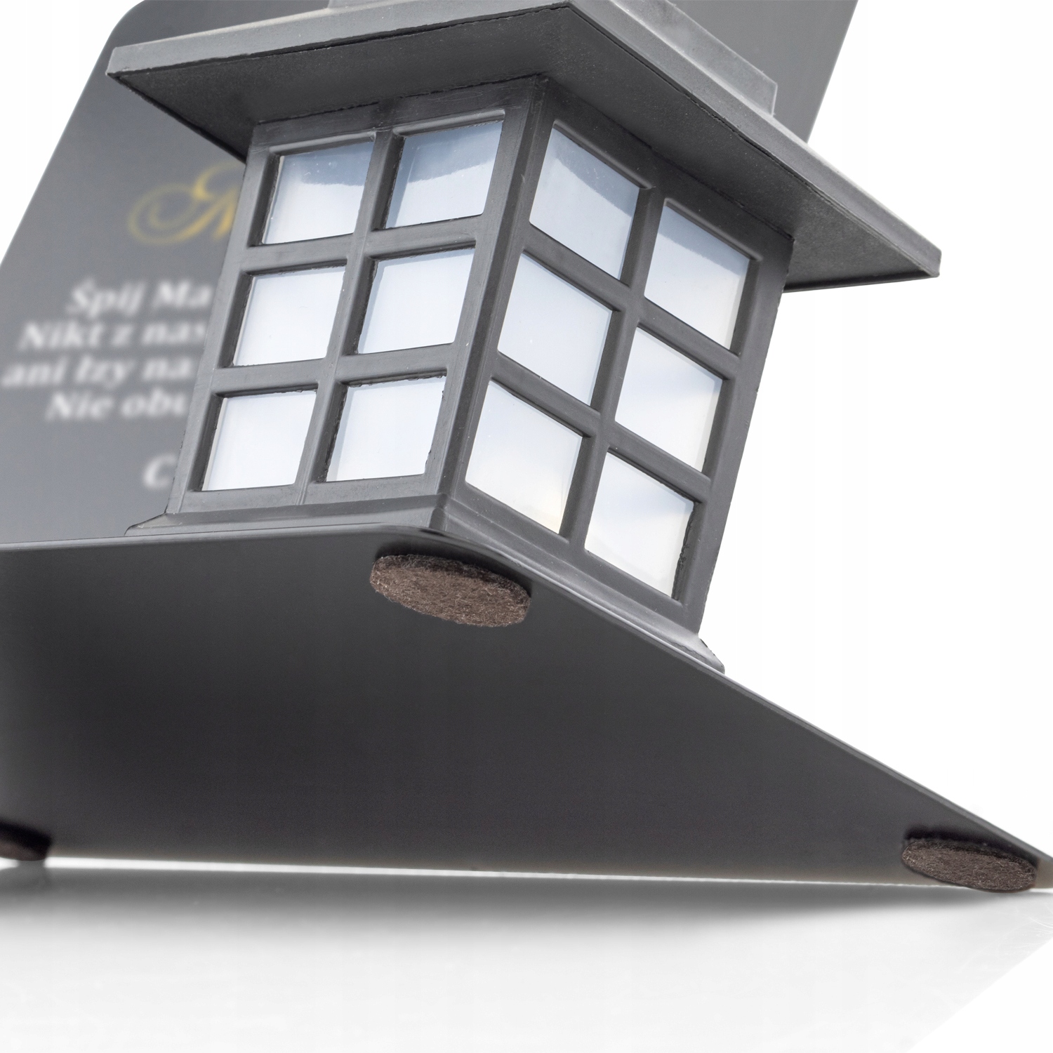 Znicz solarny z tworzywa sztucznego z mlecznymi szybkami oraz wbudowanym czujnikiem zmierzchu.
