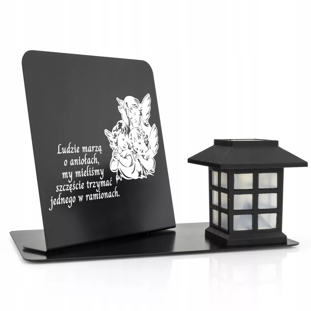 Podstawka i postument wykonane zostały z solidnego metalu w kolorze czarnym, dzięki czemu całość jest odpowiednio ciężka i stabilna, co chroni przed wiatrem. Metal został przycięty w taki sposób, że wszystkie boki zostały gładko wykończone, a jego powierzchnia została polakierowana proszkowo. Od spodu zostało zamontowane 5 specjalnych podkładek filcowych, które zabezpieczają pomnik przed zarysowaniem.