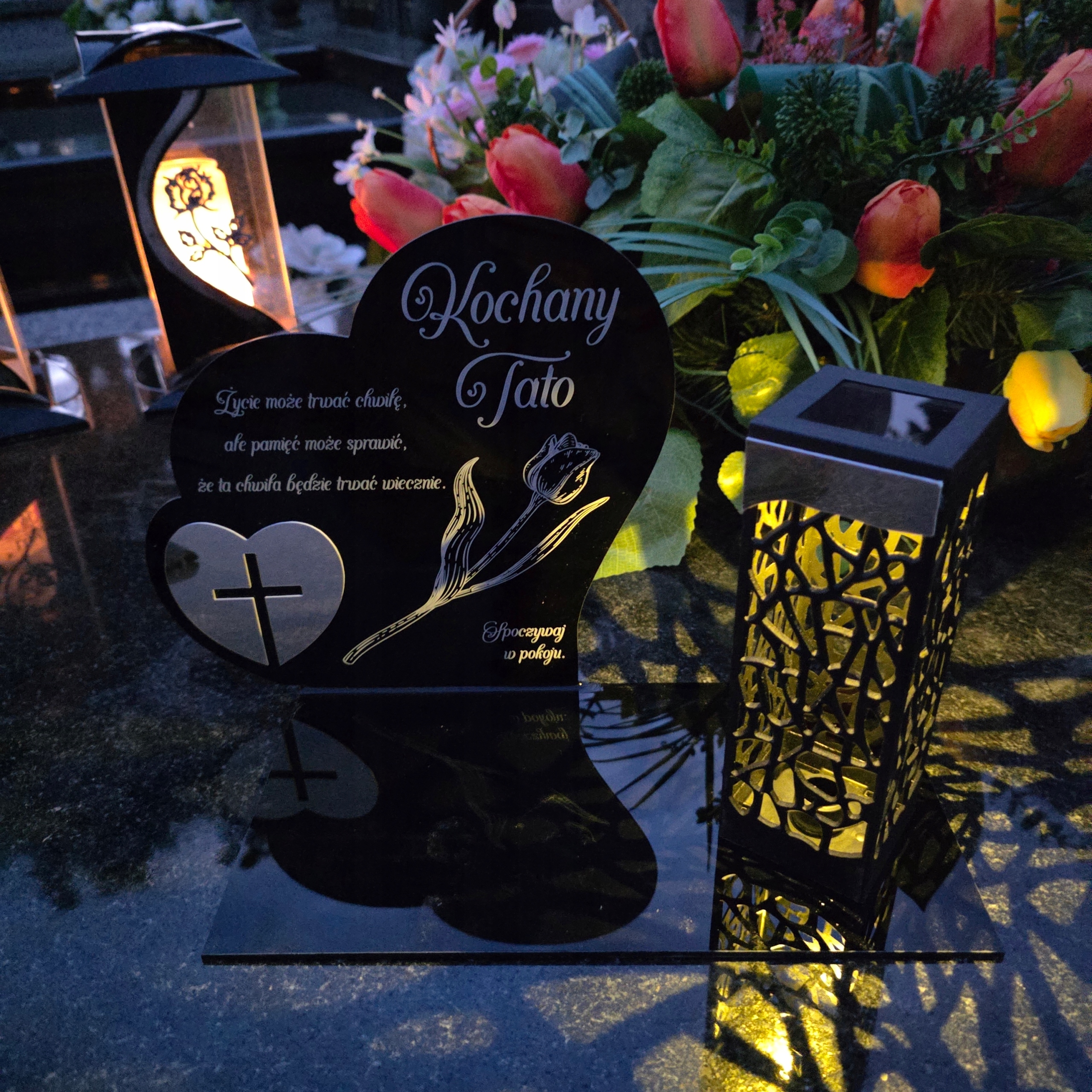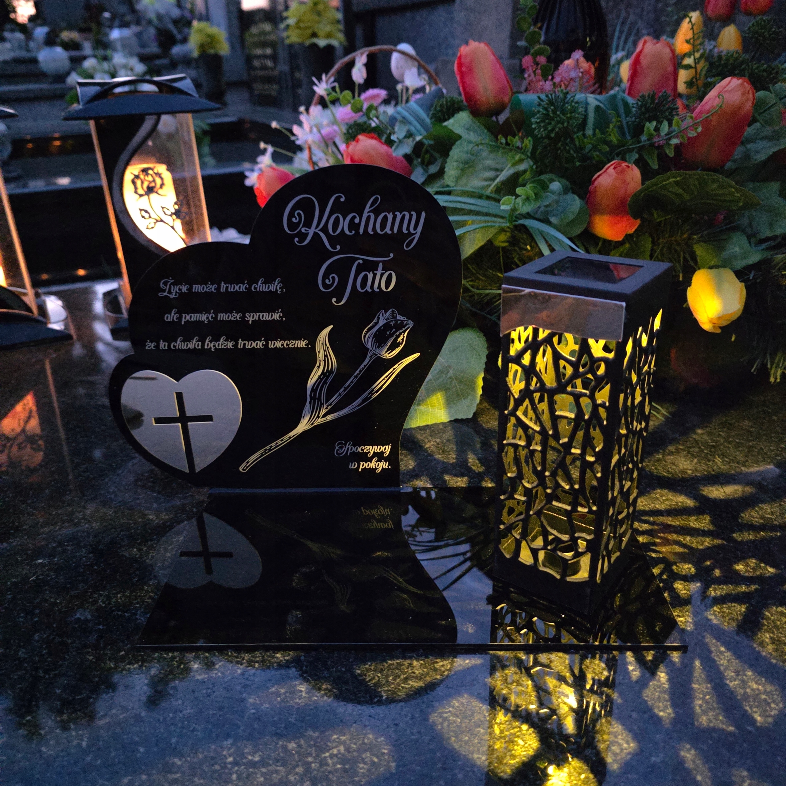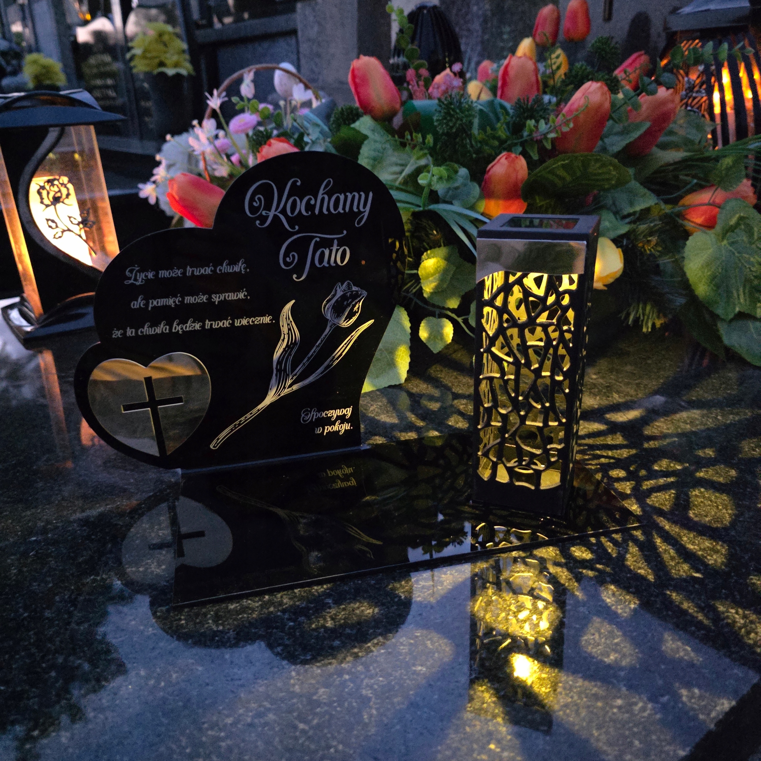 ZNICZ SOLARNY z Grawerem Wieczna Lampka Latarenka LED STATUETKA dla taty