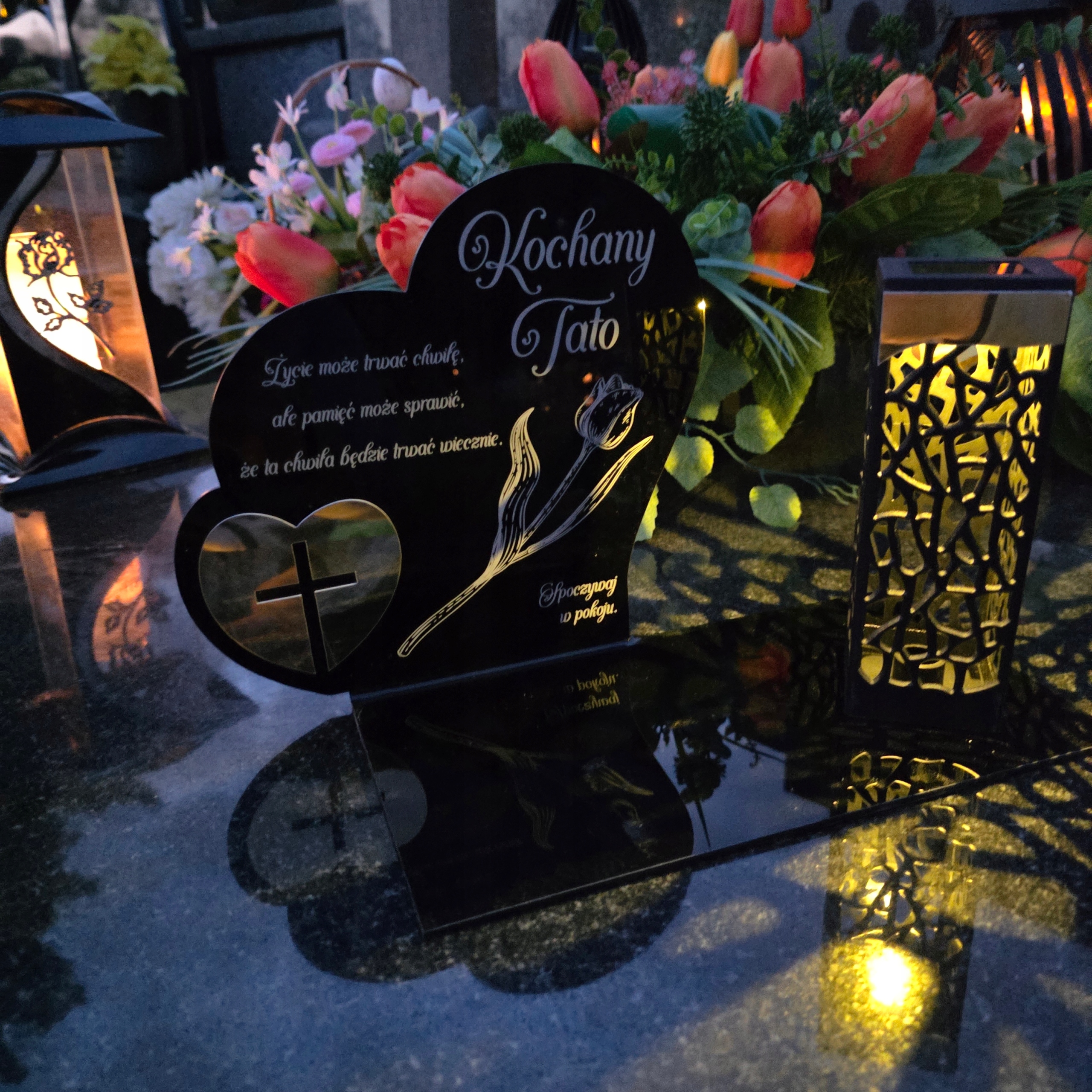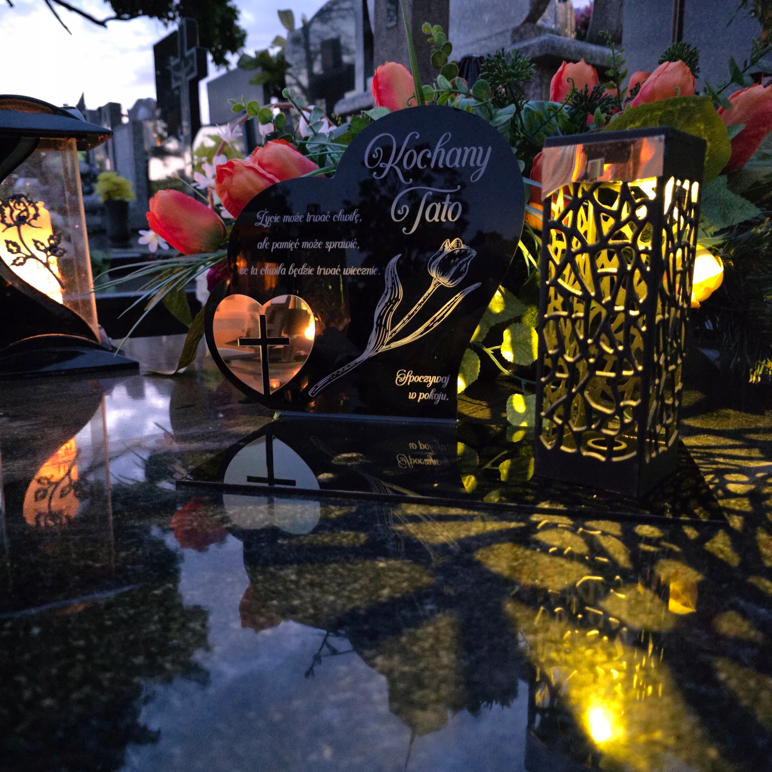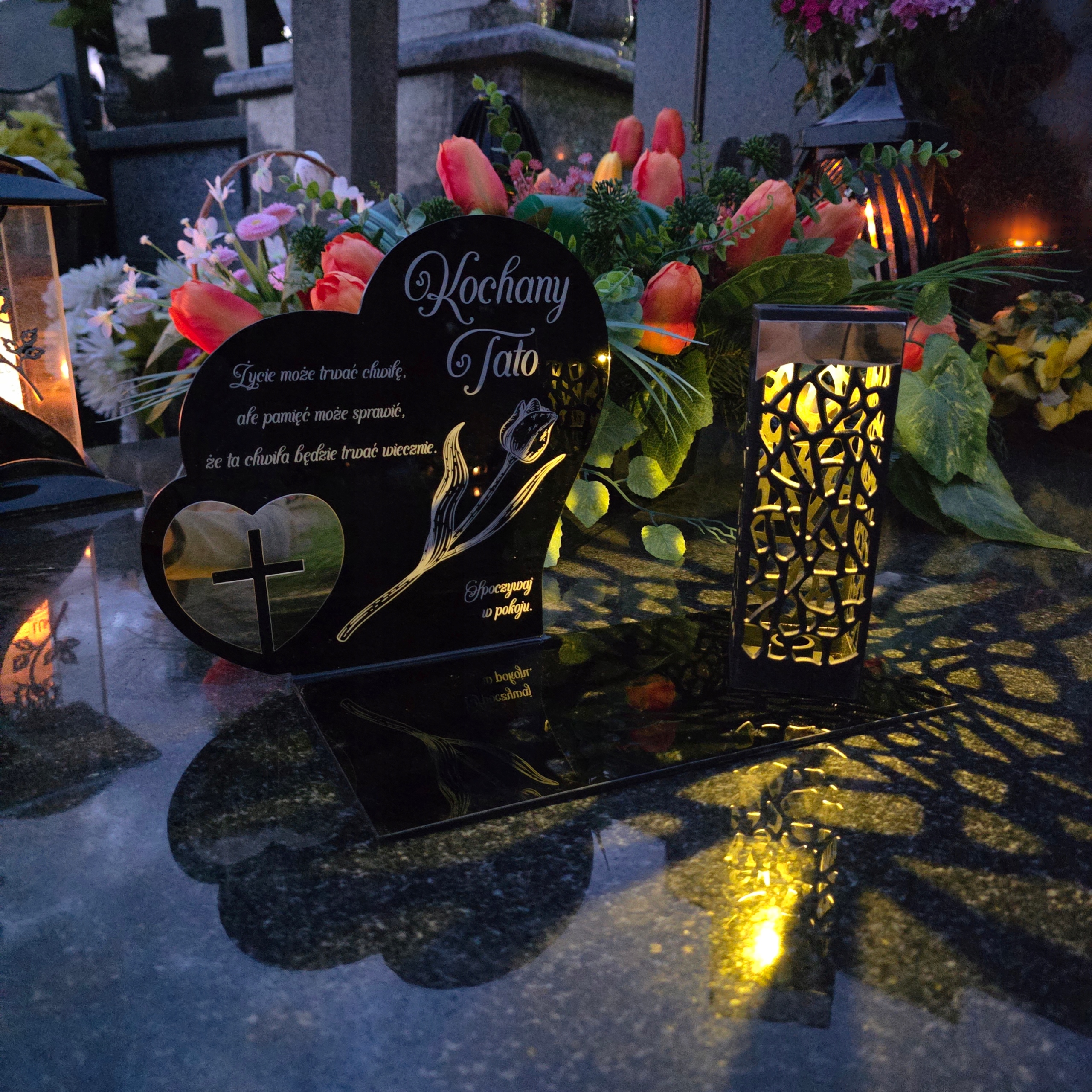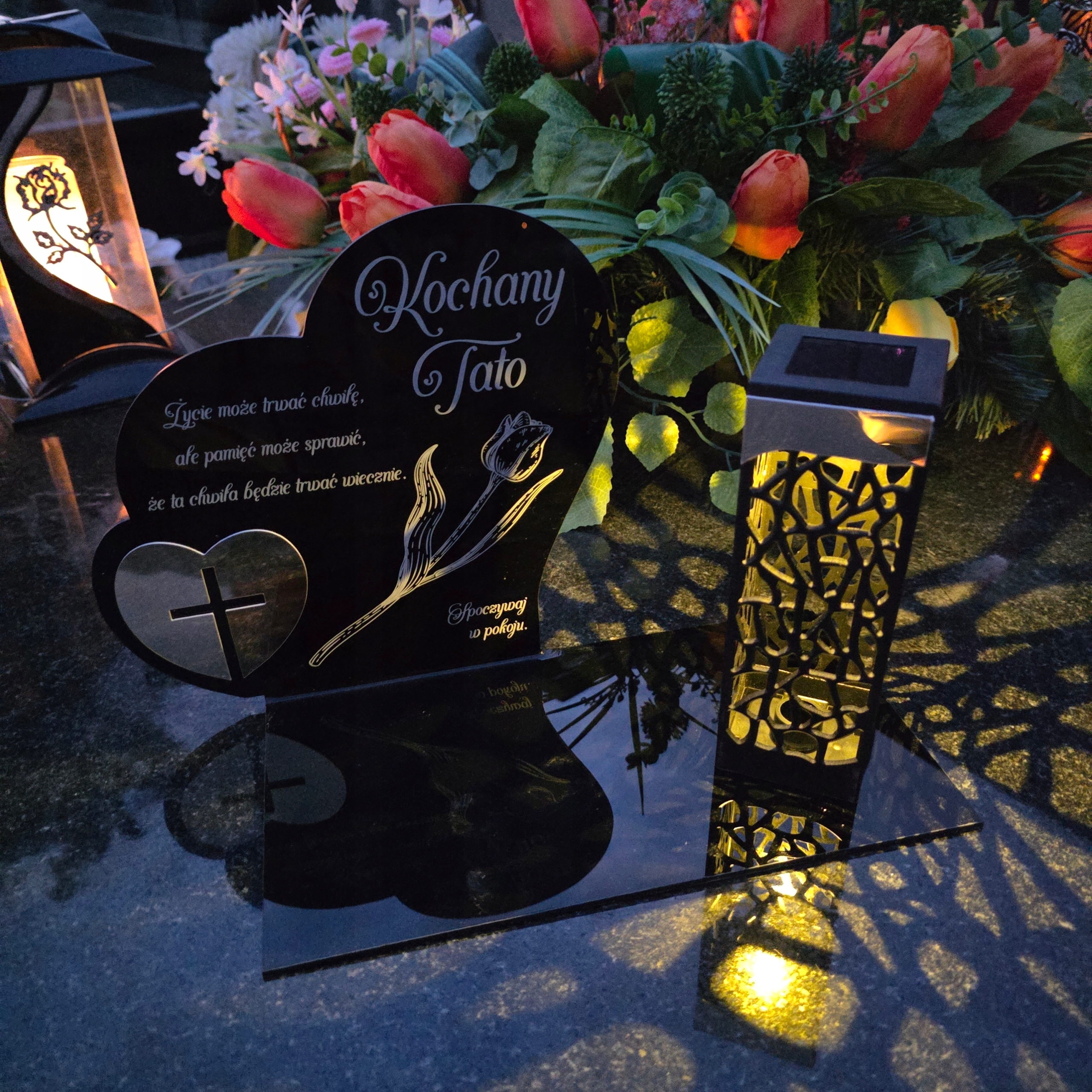 ZNICZ SOLARNY z Grawerem Wieczna Lampka Latarenka LED STATUETKA dla taty