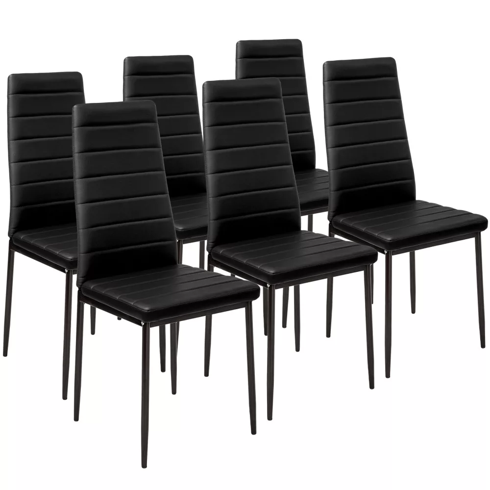 Ten piękny, elegancki zestaw krzeseł dzięki swej współczesnej prostocie ozdobi Państwa jadalnię, kuchnię, poczekalnię gabinetu czy bistro. Ale to jeszcze nie wszystko! Nasze krzesła są lekkie, miękkie i bardzo wygodne, oferując wysoki poziom komfortu. Wytrzymałe obicie ze sztucznej skóry jest przyjemne w dotyku i łatwe w czyszczeniu. Ponieważ krzesła są lekkie, łatwo je dzięki temu podnieść. Celem ochrony podłogi i uniknięcia hałasu, nogi są wyposażone w podkładki z tworzywa sztucznego. Tapicerka ma grubość około 3 cm.