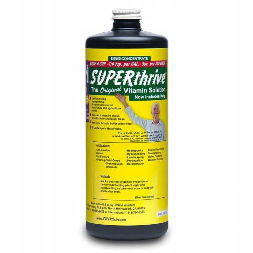 Czym jest Superthrive? Nie jest to klasyczny nawóz jak wiele znanych Wam z firmy Canna, Hesi czy Plagron, ale bardzo pomaga roślinie w fazie wzrostu i kwitnienia. Początki swoje bierze z USA i Kanady gdzie święci triumfy juz od dekady. Zawiera ponad 50 różnych witamin i hormonów. Superaktywny koncentrat ze składnikami stymulującymi roślinę do lepszego wzrostu i obfitego kwitnienia. Działa bezpośrednio na układ wzrostu rośliny oraz na kwiaty dając lepsze wybarwienie i mocne korzenie, oraz silna łodygę, która dostarcza hormonów i witamin do kwiatów, dzięki czemu stają się one zdecydowanie cięższe i większe. Większe kwiaty wzmagają w roślinie chęć do zwiększonej produkcji hormonów kwitnienia i doprowadzają do oszałamiających efektów finalnych w postaci większego uzysku przy zbiorach. Doskonale sprawdza się również w sytuacjach silnego stresu roślinnego.