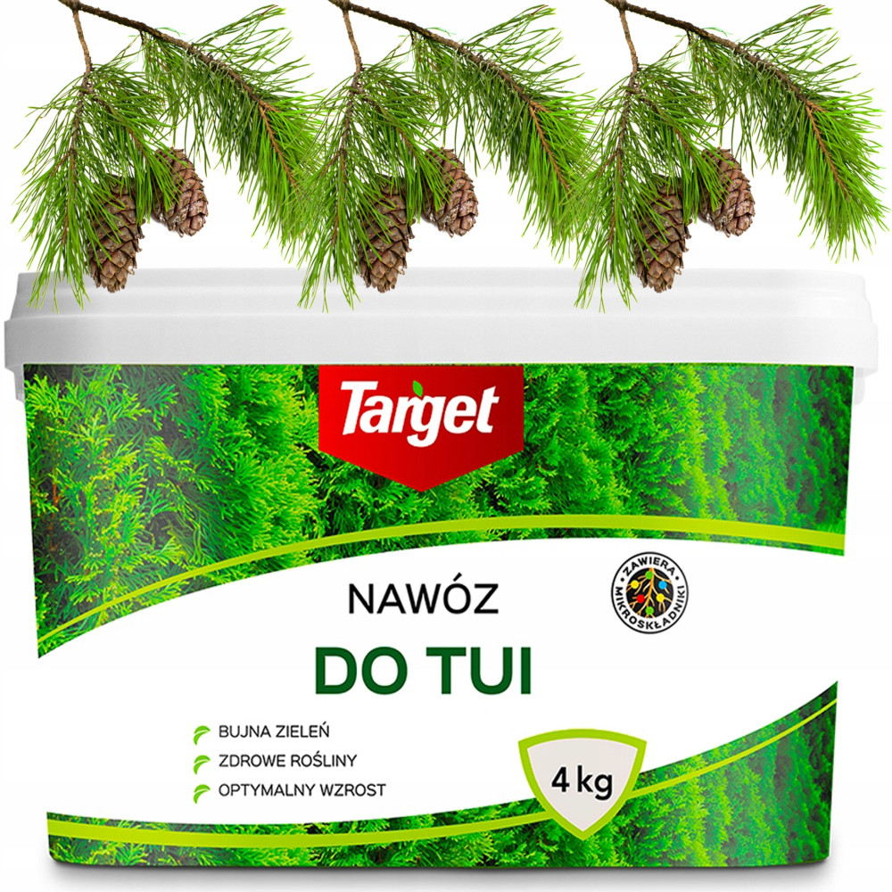 Prezentowany nawóz do tui służy do dokarmiania iglaków, zwłaszcza żywotników. Zaopatruje rośliny w podstawowe makroskładniki pokarmowe i tym samym dba o ich rozwój. Jest to preparat uznanej na rynku ogrodniczym marki Target.