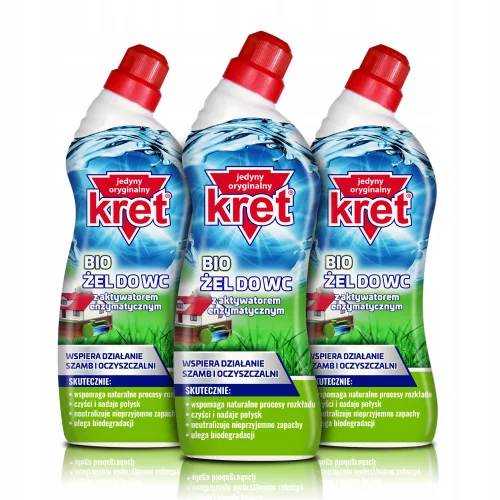 BIO Żel do WC z aktywatorem enzymatycznym to innowacyjna receptura, która zapewnia Twojej toalecie czystość i jednocześnie wspiera działanie szamb i przydomowych oczyszczalni ścieków. Specjalnie dobrane środki powierzchniowo czynne i enzymy, które działają w niskich temperaturach, efektywnie czyszczą muszle WC, bidety, pisuary, a także rury kanalizacyjne.