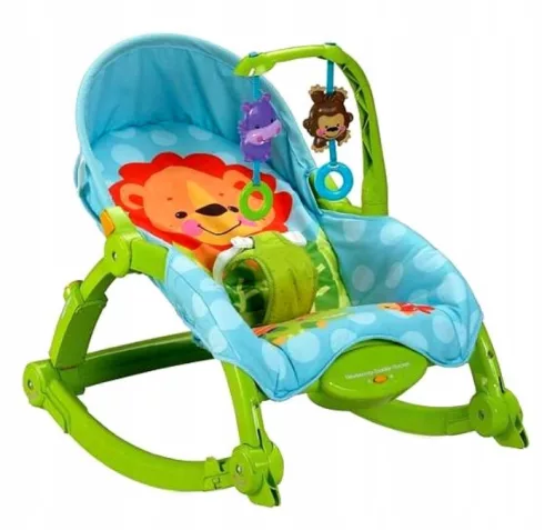 Siedzisko usytuowane jest na płozach, dzięki którym każdy ruch dziecka powoduje bujanie. Po rozłożeniu blokady – powstanie leżak. Natomiast po przełączeniu przycisku na przednim panelu – rozpocznie się masaż wibracyjny. Solidny, stabilny stelaż oraz trzypunktowe pasy zapewnią dziecku komfort i bezpieczeństwo. Dzięki lekkiej konstrukcji bez trudu można przenieść leżaczek z miejsca na miejsce.