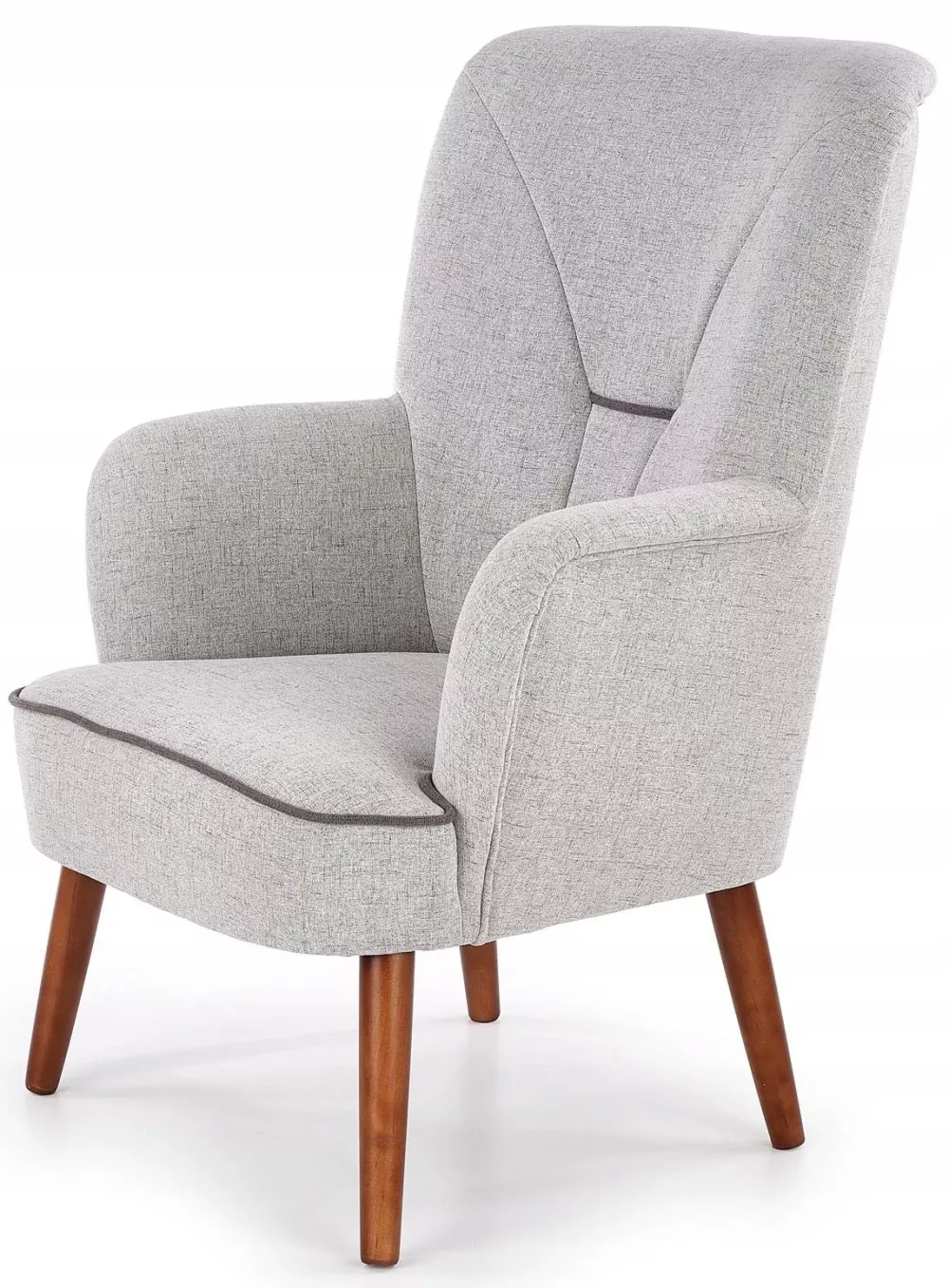 Oryginalny fotel BISHOP odnajdzie się w większości tradycyjnych aranżacji, oraz tych w stylu skandynawskim. Charakteryzuje się ciekawym kształtem oraz stosunkowo wysokim oparciem. Komfort zapewniają również podłokietniki. Fotel w całości tapicerowany jest tkaniną w modnym wybarwieniu. Nogi wykonane są z naturalnego drewna, co przekłada się na długoletnie użytkowanie fotela. Są krótkie i zwężane ku dołowi. Dzięki wszystkim tym atutom fotel świetnie będzie prezentował się w salonie, pokoju dziennym, ale także w biurach czy hotelowych wnętrzach.