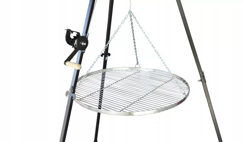 Trójnóg XXL 210 CM największy i najsolidniejszy trójnóg o wysokości 210 cm oraz profilach 20. Trójnóg tych parametrów jest bardzo solidny i super prezentuje się w ogrodzie, posiada kołowrotek z zapadką służącą do regulowania wysokości rusztu dzięki czemu zawsze mają Państwo pełną kontrolę nad procesem grillowania, ponadto grill jest składany z dwóch części, co znacząco ułatwia jego transport.