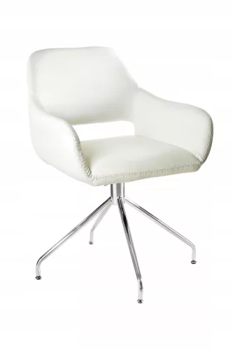 Nowoczesny fotel konferencyjny Talia o ciekawej formie doskonale spełnia swoją rolę w poczekalni, biurze, sali konferencyjnej, auli. Solidny stelaż wykonany z chromowanego metalu z możliwością obracania wokół własnej osi..