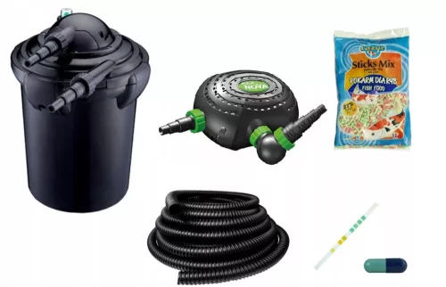 Filtr ciśnieniowy z lampą UV, przeznaczony do filtrowania wody w stawach i oczkach ogrodowych. Filtr jest wyposażony w pełen zestaw wkładów zapewniających prawidłową filtrację mechaniczną i biologiczną wody.
