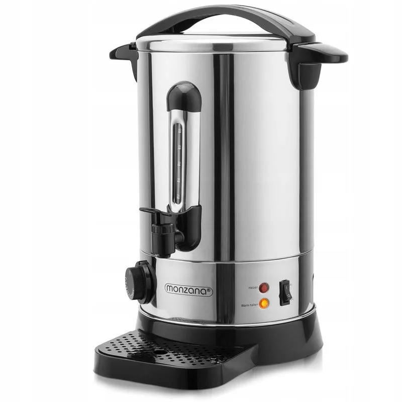 Skala poziomu napełnienia w dowolnym momencie pokazuje ile filiżanek jest dostępnych. Za pomocą termostatu możesz dokładnie określić, jak ciepły / gorący powinien być Twój napój (30-110 stopni). Podgrzewacz posiada pokrywę ze stali nierdzewnej z urządzeniem blokującym. Napełnianie warnika jest łatwe dzięki izolowanemu termicznie uchwytowi na pokrywce. Bardzo szeroka podstawa garnka zapewnia wysoki poziom stabilności. Baw się dobrze przy gorącym napoju w zimnych porach roku.