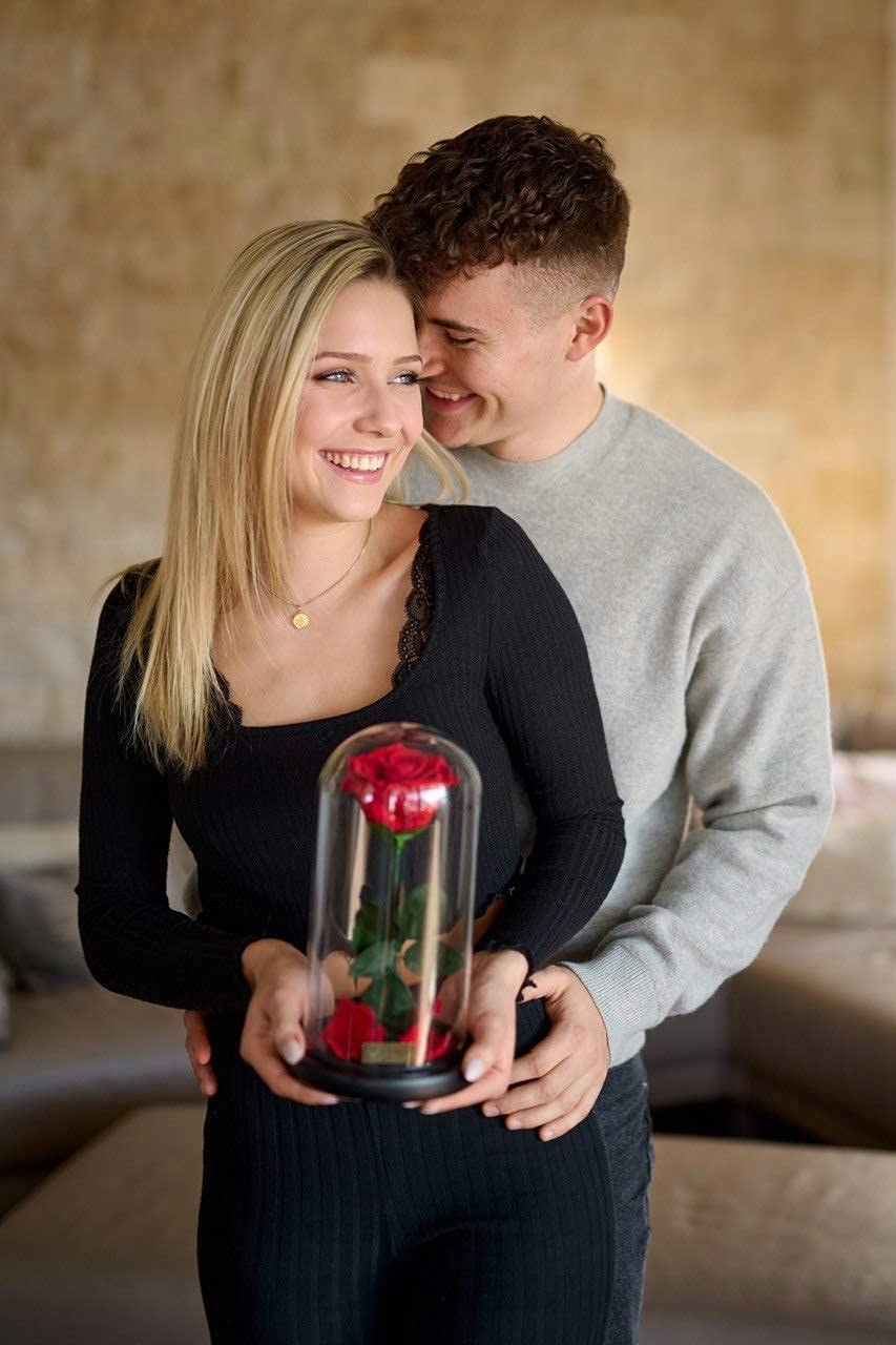 Róża zamknięta jest w szkle, które jest bardzo estetyczne i dodaje produktowi dodatkowego uroku. Wieczna róża w szkle to doskonały wybór dla osób ceniących sobie elegancję i trwałość.