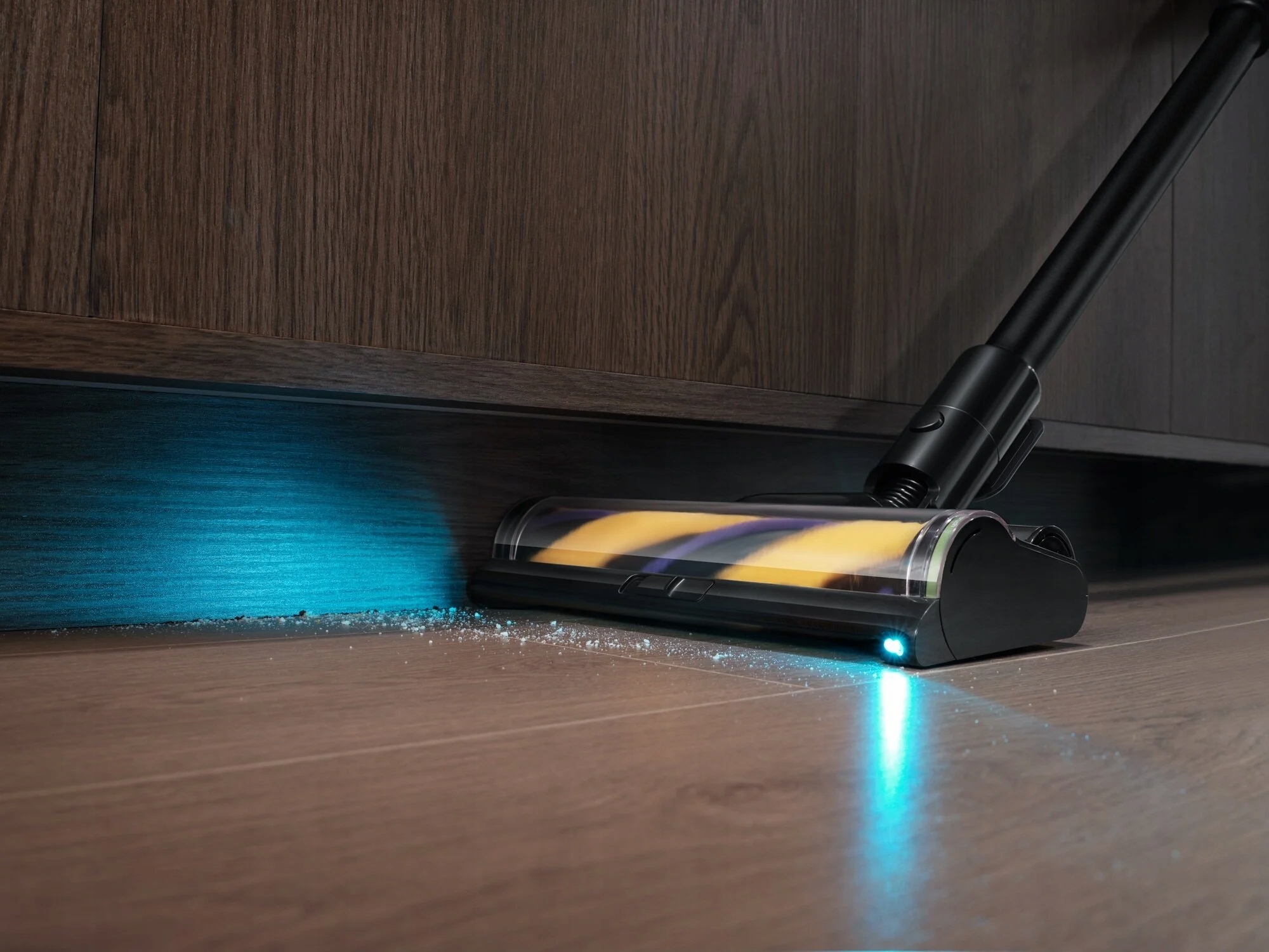 Wysokowydajna szczotka Omni-Brush™ z oświetleniem i technologią CelesTech™ rozszerza kąt pokrycia błękitnym światłem do 140°, zapewniając 16-krotnie lepszą widoczność kurzu*. Szczotka rozpoznaje różne materiały podłogowe i odpowiednio dostosowuje prędkość obrotową, aby skutecznie wyczyścić każdą powierzchnię.