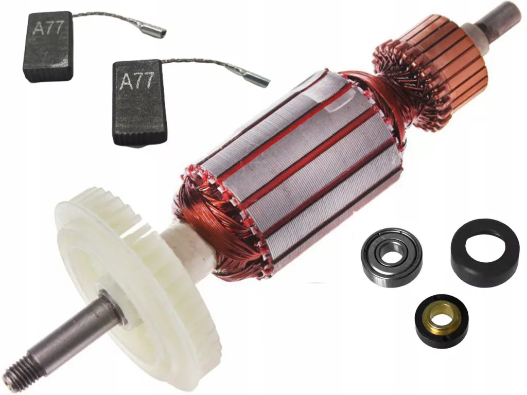 zestaw: wirnik, łożysko, 2szt. szczotek węglowych z bezpiecznikami, magnes, gumowy amortyzator łożyska