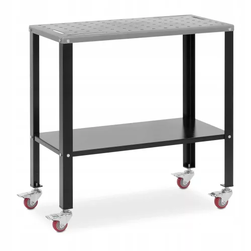 Perforowaną stalową płytę osadzono na czterech wyjątkowo mocnych nogach o wymiarach 50 x 50 mm. Pod spodem znajduje się półka, na której położysz w zasięgu ręki akcesoria takie jak zaciski czy elektrody. Wytrzymały stół spawalniczy wykonany z solidnej stali węglowej nie chybocze się ani nie drga, nawet podczas spawania z pełną mocą lub przemieszczania obrabianego przedmiotu. Wraz ze stołem otrzymujesz niezawodną podstawę do wszystkich prac spawalniczych.