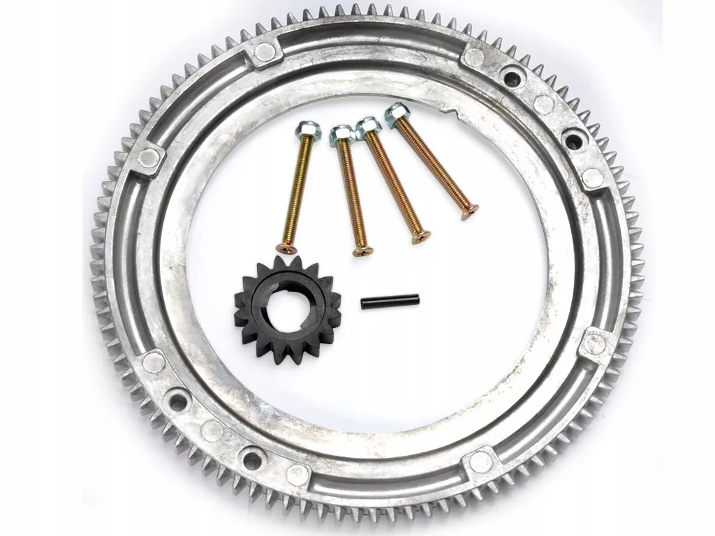 • W zestawie - wieniec zębaty, śruby mocujące z nakrętkami, zębatka rozrusznika (zestaw ze zdjęcia)