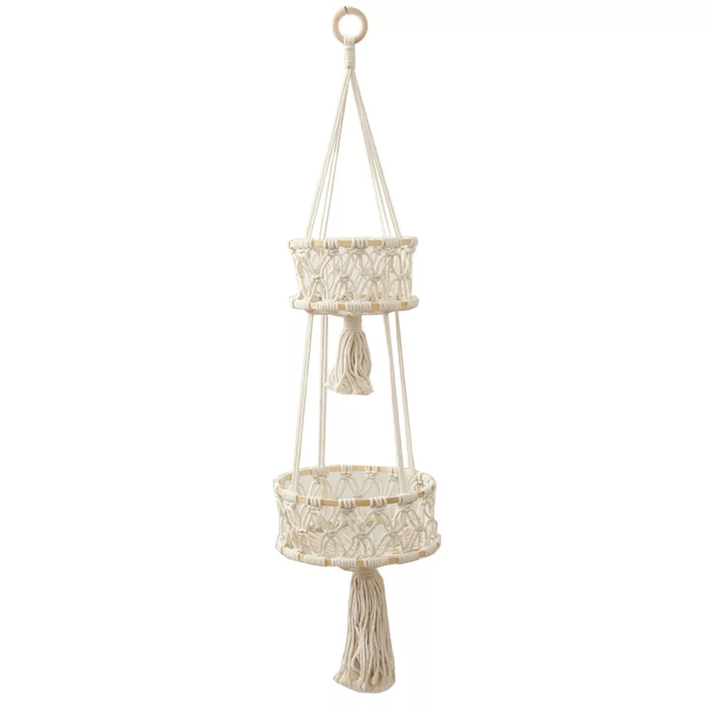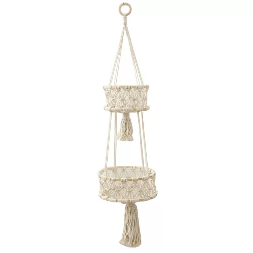 Makrama Wiszący kosz Wieszak na rośliny do przechowywania owoców i warzyw w domu Wite 2 poziomy