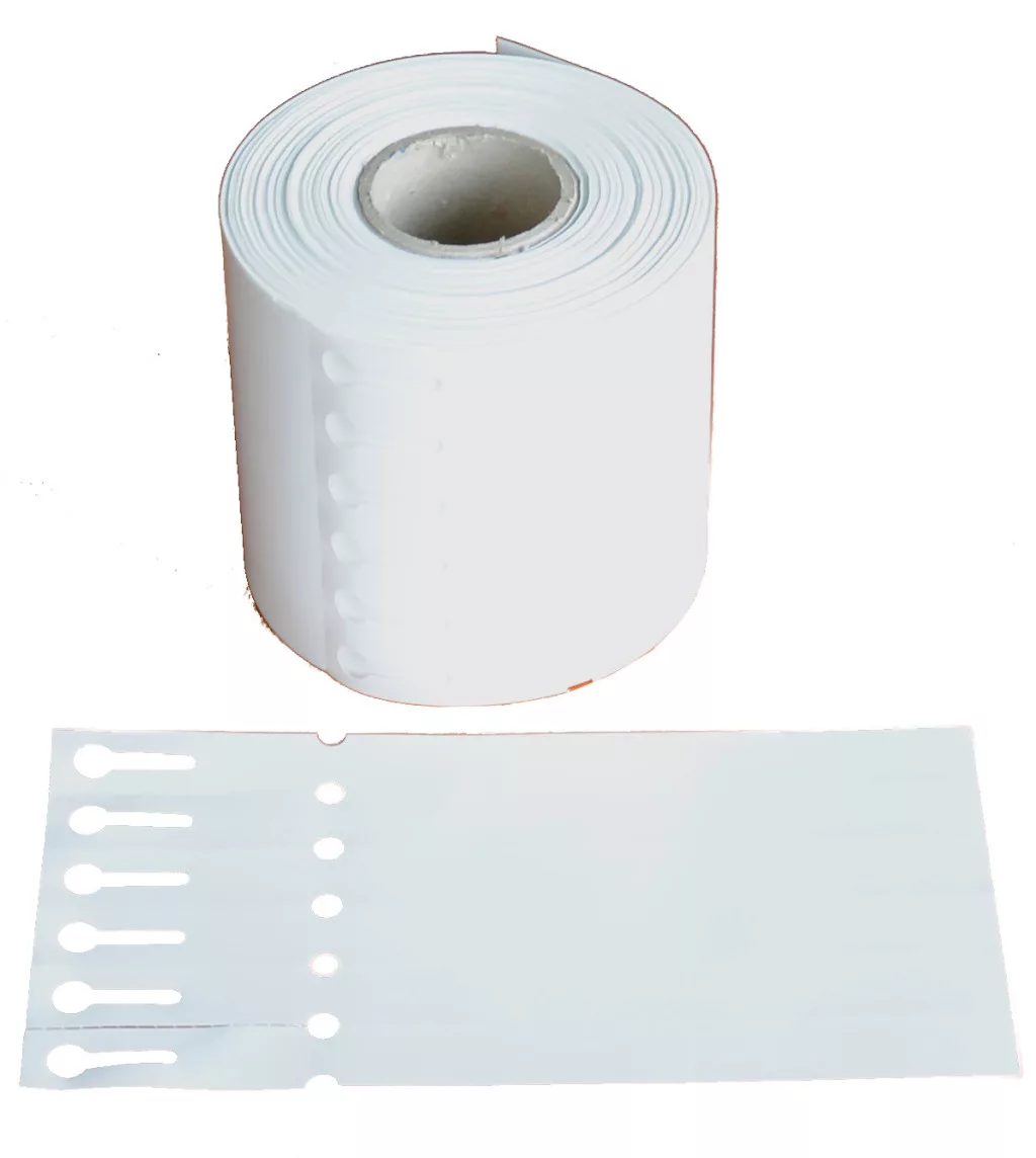 Jest to elastyczny plastik, który nie ma możliwości aby rozmókł czy zmarszczył się w wyniku działania wody. Rodzaj materiału gwarantuje rozrywanie dokładnie według perforacji. Etykiety nie pękają podczas rozrywania. Materiał wybrany spośród dziesiątek innych propozycji.