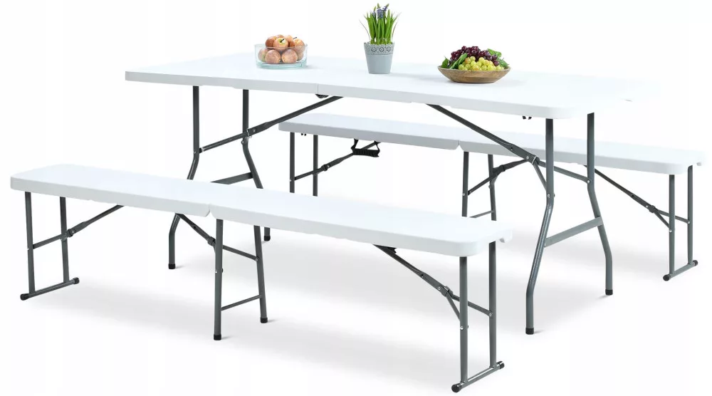 Uważamy, że zestaw cateringowy z ławą 180/2x to świetna propozycja dla osób, które poszukują funkcjonalnego i praktycznego zestawu. Ławkę i stół można złożyć, aby zajmowały niewiele miejsca, co jest przydatne, gdy podróżujesz lub gdy brakuje miejsca do przechowywania. Stół wykonany jest z wytrzymałego tworzywa sztucznego, dzięki czemu jest odporny na warunki atmosferyczne. Zestaw doskonale sprawdza się podczas imprez plenerowych.