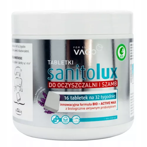 Biologiczny preparat do przydomowych oczyszczalni i szamb w formie tabletek. Służy do rozkładu zanieczyszczeń organicznych w szambach i złogów w kanalizacji. Przeznaczony do stosowania w gospodarstwach domowych oraz małych hotelach lub restauracjach. Wspomaga naturalne procesy oczyszczania ścieków i aktywuje możliwość ich regeneracji.Wygodny w zastosowaniu – dozowany przez toaletę.Nie powoduje korozji i uszkodzeń urządzeń sanitarnych. Bezpieczny dla ludzi, zwierząt i środowiska naturalnego. Wzbogacony o ekstrakt z lawendy. Ekonomiczne opakowanie wystarcza na 32 tygodnie.