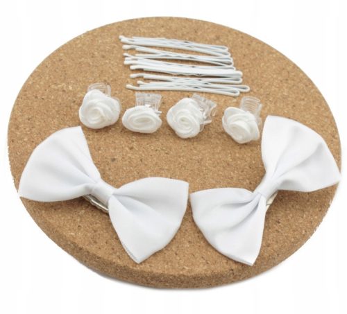 Zestaw ozdób do włosów dla dziewczynki wsuwki , krabiki z różyczkami i klamerki w kolorze białym