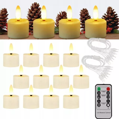 �12 szt. Ładowalne podgrzewacze z pilotem, przyciemniane podgrzewacze LED, ciepłe białe świece, akumulatorowe świece bezpłomieniowe do dekoracji wnętrz