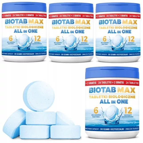 BioTab MAX 3w1 Tabletki biologiczne do szamba i oczyszczalni + Odtłuszczanie na 4 lata 96+8 Gratis