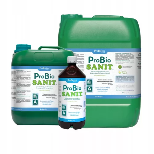 ProBio SANIT™ to ekologiczny bioaktywator procesu fermentacji stosowany na oczyszczaniach, w trakcjach ściekowych, komorach fermentacyjnych, szambach, kompostowniach, a także na lagunach osadów. Ułatwia mineralizację materii organicznej, zmniejsza jej objętość oraz co ważne - neutralizuje odory. Pożyteczne mikroorganizmy w nim występujące wzajemnie się wspierają i jako zespół wypierają chorobotwórczą mikroflorę, zmieniając kierunek procesu mikrobiologicznego na rewitalizujący środowisko w miejscu ich użycia.